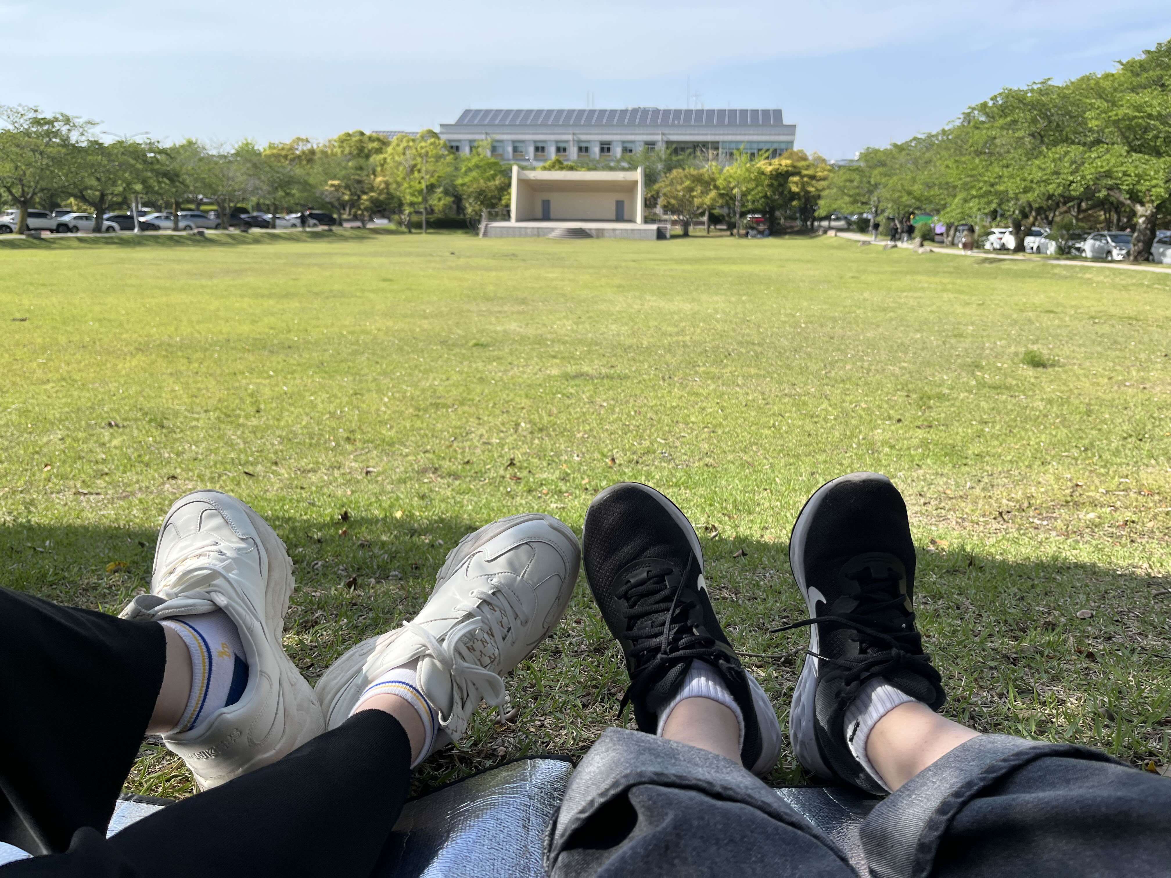 우리는… 자리가 없어서 잔디밭 감